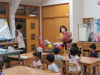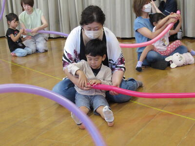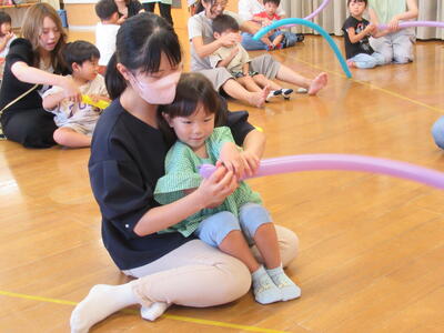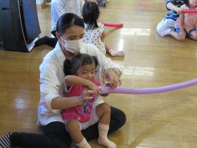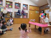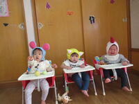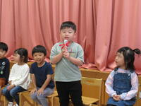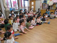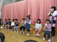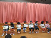 もも・つくし・すみれ組では、1名と、先月お休みしてしまったおともだちがお祝いしてもらいました。