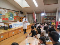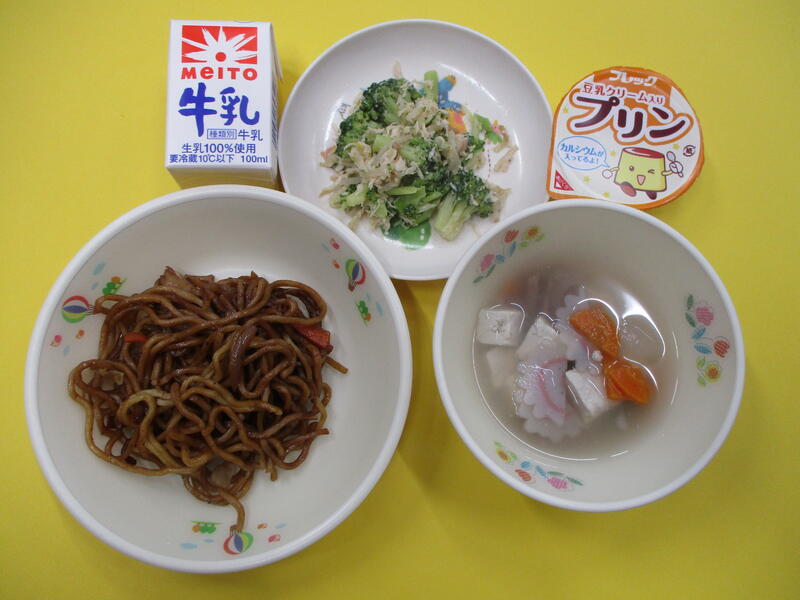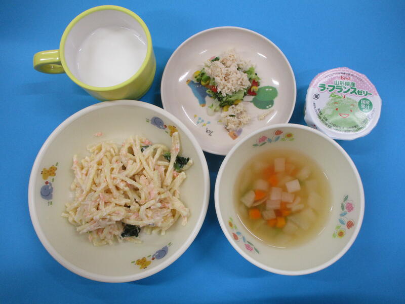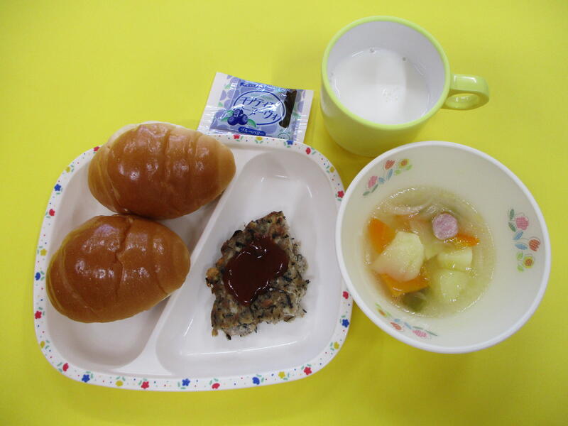 絵本のなかで出てくる食材が給食のメニューになっていました