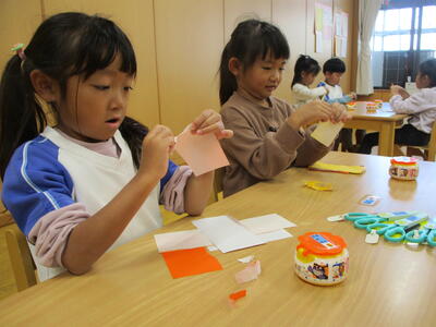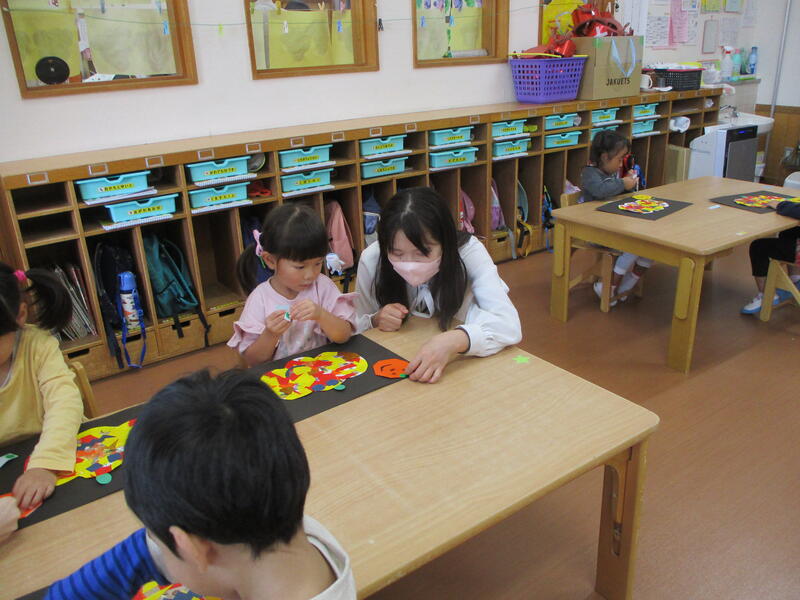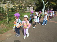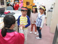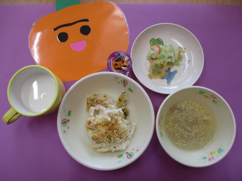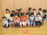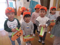 今日は、ハロウィン各クラスで仮装を楽しみ、「お菓子をくれないと いたずらしちゃうぞ~」、「トリックオアトリート!」と言って、お菓子をもらいました