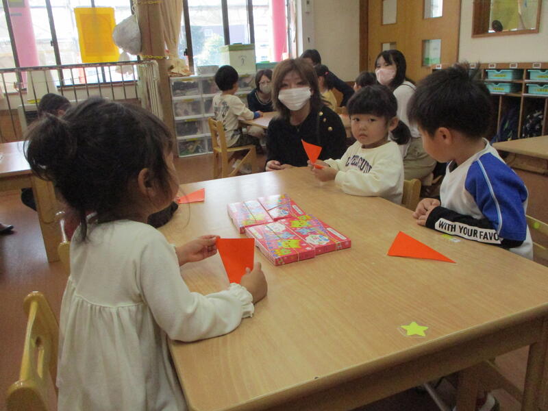 もも・つくし・すみれ組さんもお菓子をもらいに行ったよ~