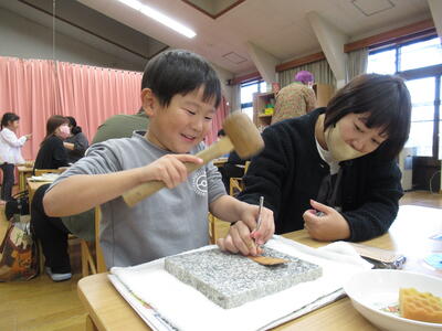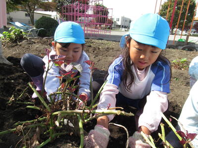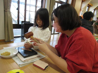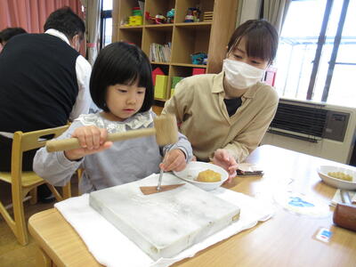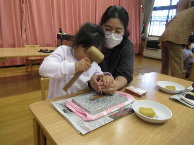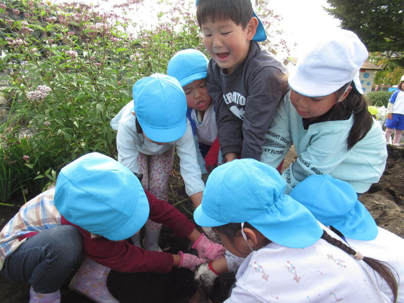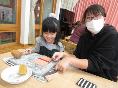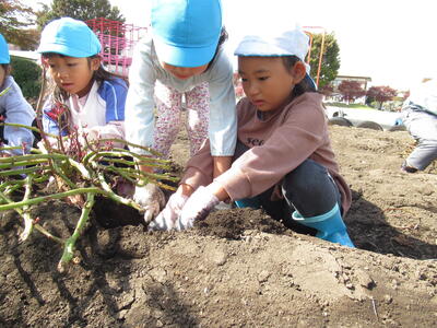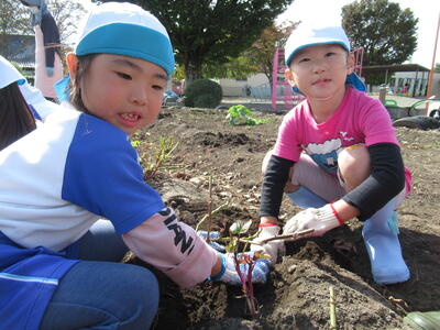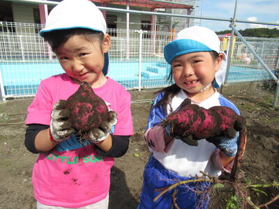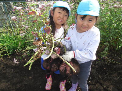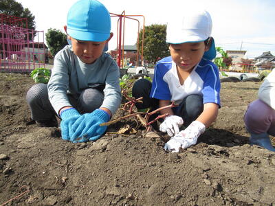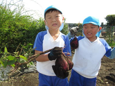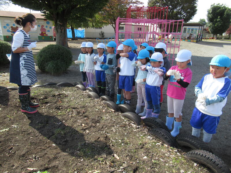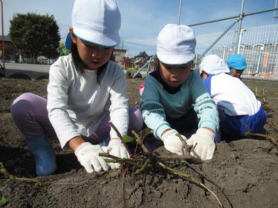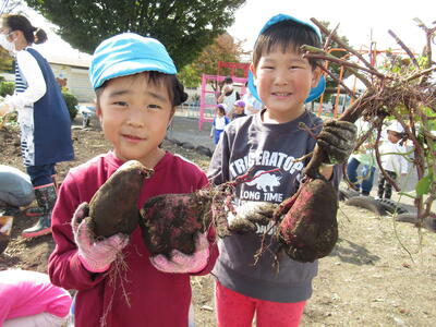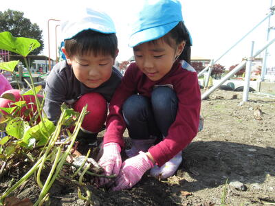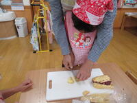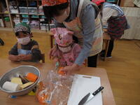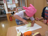 さくら組さんが園で栽培したさつま芋を使ってさつま汁づくりをしました