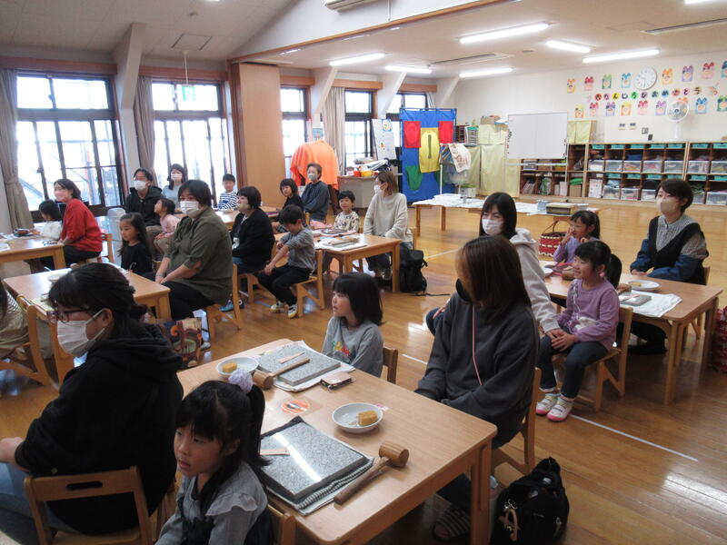 今夜は十三夜なので、遊戯室でたんぽぽ・ゆり・さくら組が十三夜さんの集会をしました