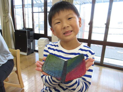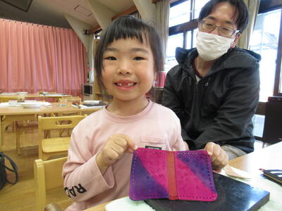 さくら組の家庭教育学級では、レザークラフト体験をしました。