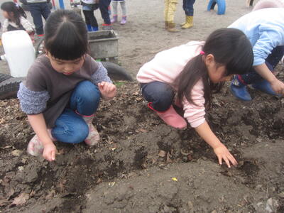4歳児ゆり組さんが、じゃがいもの植えつけをしました