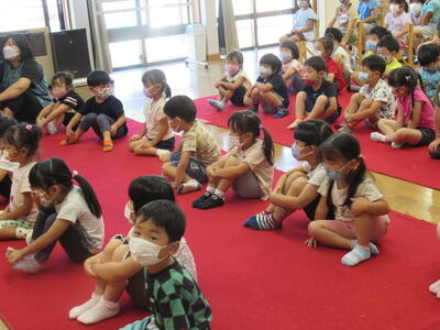 「朝ご飯をしっかり食べて来て、保育園で元気に遊ぼうね」と、青山栄養士さんのお話をよく聞いていました