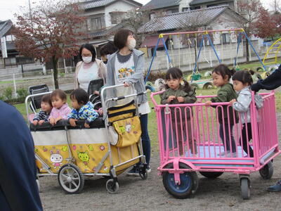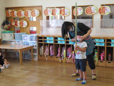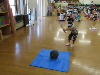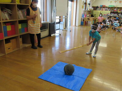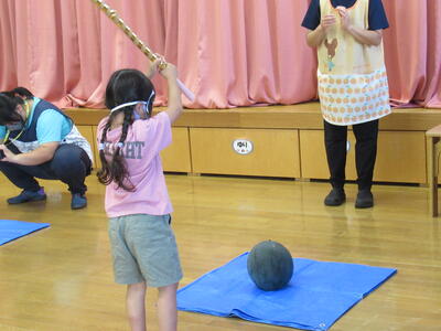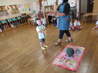 さくら組さんが、お遊戯会で演じた「かさじぞう」、今流行っている「鬼滅の刃」を用いて、宝探しなどを行いました。
