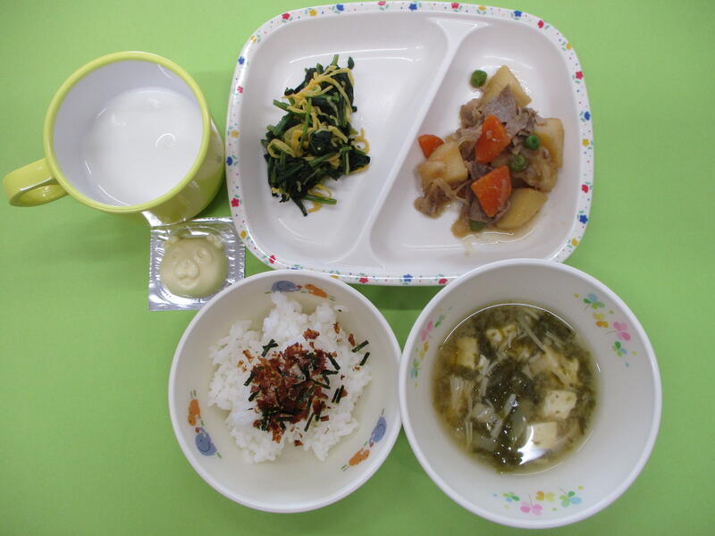5月15日の給食 投稿日時 : 2024/05/15 祖母井保育園管理者 カテゴリ: ★ごはん ★ふりかけ ★肉じゃが煮 ★錦糸和え ★あおさのみそ汁 ★チーズ ★牛乳 {{options.likeCount}} {{options.likeCount}}