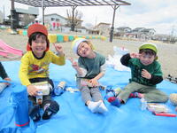 みんなとってもいい笑顔お外で食べるとよりおいしいね!
