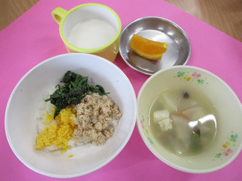6月5日の給食 投稿日時 : 2023/06/05 祖母井保育園管理者 カテゴリ: ★三色丼 ★具だくさんスープ ★オレンジ ★牛乳 {{options.likeCount}} {{options.likeCount}}