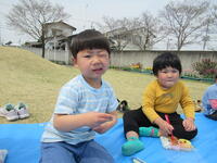 ゆり・さくら組はランチパックで園庭ピクニックキラキラ