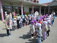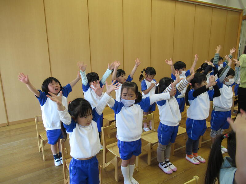 こどもの日のお祝いでミニ運動会をたんぽぽ・ゆり・さくら組が園庭で行いましたキラキラ
