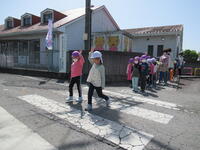 交通指導では、登園・降園の際の歩き方についてお話をしました車