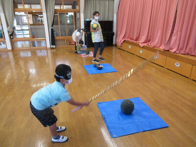 さくら組とゆり組は、遊戯室で行いました