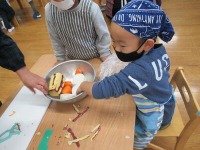 秋に採れた美味しい果物や野菜を食べて大きくなったお友だちです