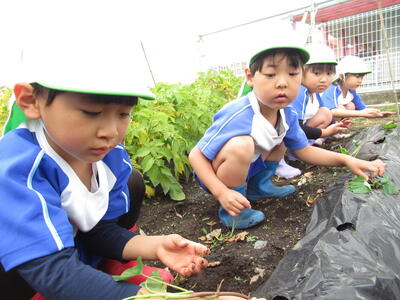園庭の畑で栽培していたじゃがいもを収穫しました