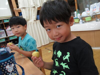 おやつの時間にみんなで穫れたてじゃがいもいただきました