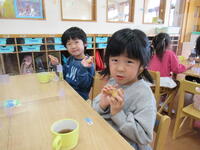 本日の午後のおやつは さくら組さんの腕にかかっています
