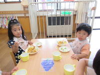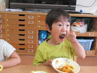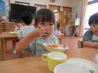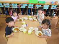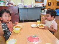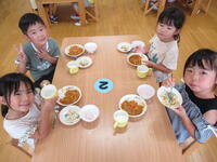 保育園のお友だちみんなでさくら組さんの作ってくれたカレーをおいしくいただきました