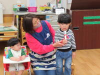 「むすんでひらいて」「チューリップ」体をゆらしながら楽しく歌えました