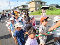 暑い中、元気いっぱい園庭を練り歩きましたピース
