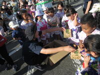 大通りから保育園隣に設けられた御仮屋まで「わっしょい!!」の掛け声で練り歩きました急ぎ