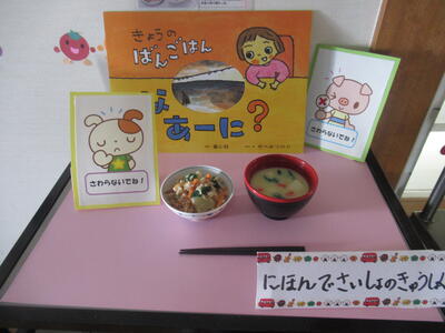 12月24日は冬休み期間になるので1か月遅らせた1月24日を給食の日として給食を作ってくれる方や食材、給食に関することに感謝する日となりました。
