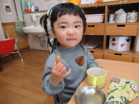 本日の午後のおやつは さくら組さんの腕にかかっています