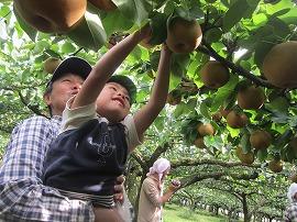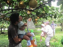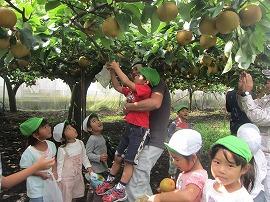 10月1日(木)、ゆり組さん・さくら組さんが、稲毛田の吉永進さん宅で梨狩り体験をさせて頂きました。