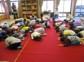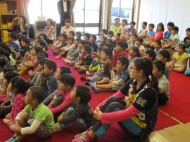 たんぽぽ・ゆり・さくら組が参加し、しっかりと座って話を聞くことができました。