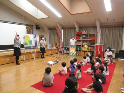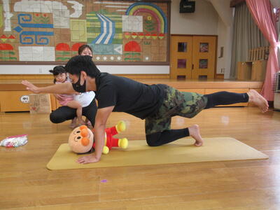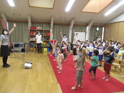 たんぽぽ・ゆり・さくら組さんが遊戯室で参加しました