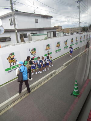 送ってくれたおうちの人に「いってきま~す」をして乗り込みます