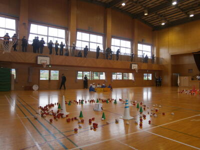 2チームで競争します。ここで結果をもとに、話し合い改善する大切さ、チームワーク、協力することの大切さを学びながら目標の達成や、うまくいかなかった場合の原因の究明、改善のための学びをしていきます。
