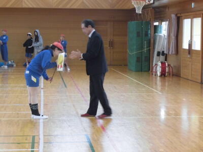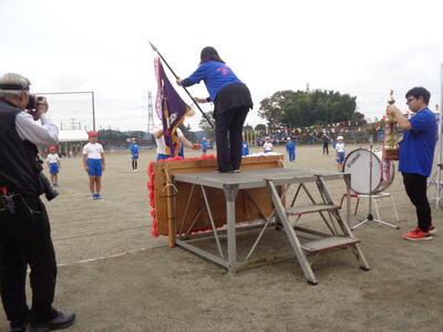 教育長様友情出演で、ミニ優勝旗を渡していただきました。
