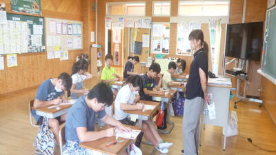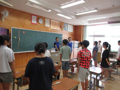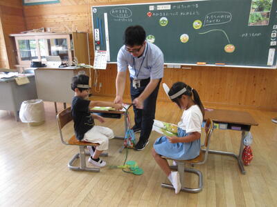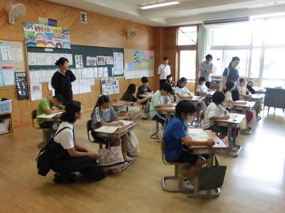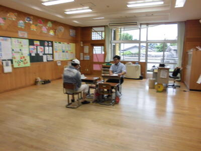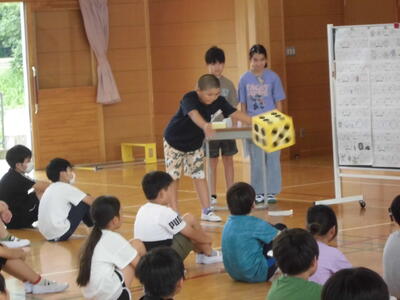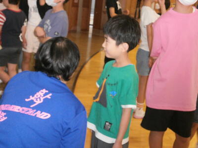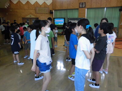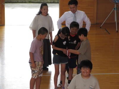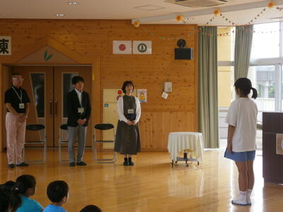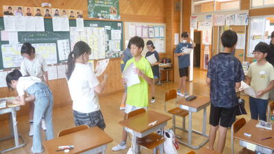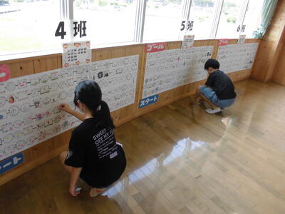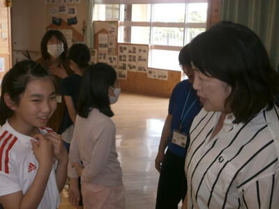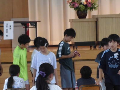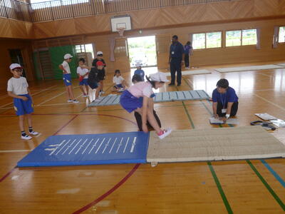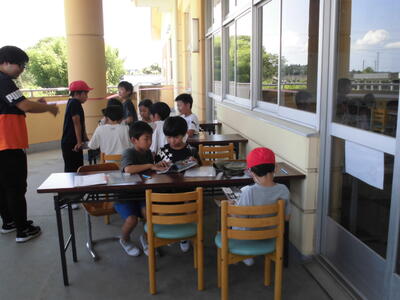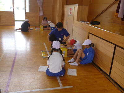 縦割り班ごとに動いたので上級生が下級生にやり方を教えたり、記録をとってくれたりほほえましい姿がたくさんありました。各担当場所の先生方に「お願いします。」「ありがとうございました。」と、声をそろえてあいさつをする声が響いていました。