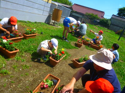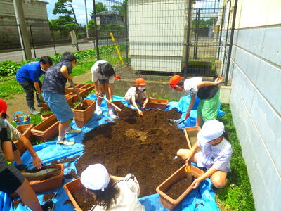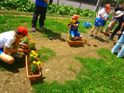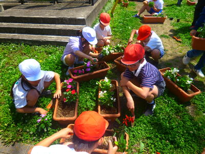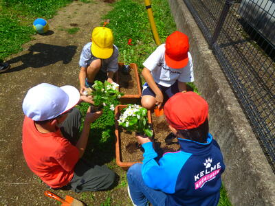 昨日、環境委員さんが準備してくれたプランターに、今日は、ボランティアのお友達も応援にきてくれて花の苗を植えました。1年生から6年生までたくさん集まってくれて、あっという間にきれいなお花のプランターが完成しました。みんなでやると、何だかいつも、とても楽しそうな安沢っ子たちです。