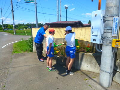ボランティア解散後も残ってくれた6年生のおかげ(ボランティアのボランティア)で、校門横の花壇やプランターの花植え、植えたばかりのプランターへのお水やりもはかどりました。いつもありがとう…
