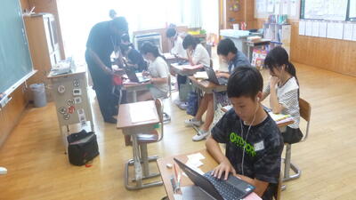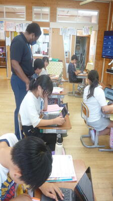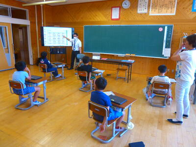 3年生は、ICT支援員さんといっしょにタブレットへのローマ字の入力方法を学びました。