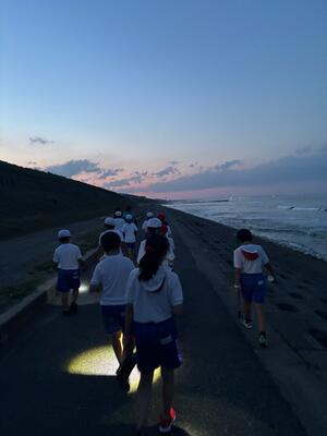海浜自然の家のスタッフのお話しによると、このように天気が良く凪の海でのナイトハイクはなかなかないそうです。