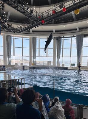 イルカの大ジャンプ!水しぶきは浴びませんでした。