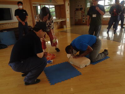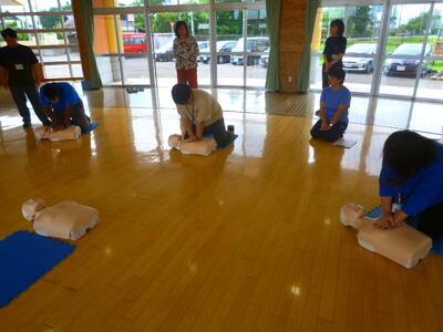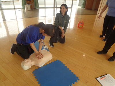 現職教育で、心肺蘇生の研修会を行いました。毎年プール開設前に教職員対象で研修を行っています。講師に矢板消防署の方々をお呼びして、心肺蘇生法及びAEDの使い方について、ご指導をいただきました。また、アナフィラキシー反応があった場合を想定し、エピペンの使い方を学びました。どちらもそのような場面にならないことが一番ですが、「備えあれば患いなし」講習で教えていただいたように冷静に判断して「チーム安沢」で対応したいと思います。