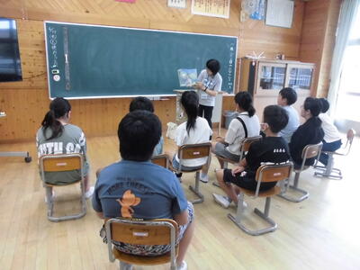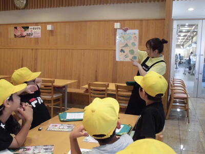 2校時目に栄養教諭の金武先生がいらっしゃって、食に関する指導を行ってくださいました。