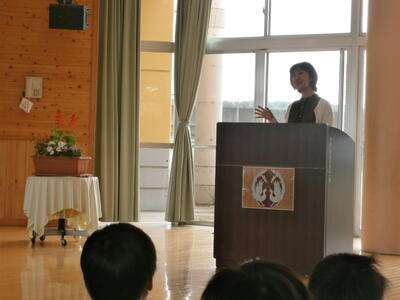 その後、6年生も参加して学校歯科医の渡辺先生から「歯の健康」についてご講話をお聞きしました。