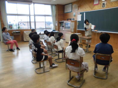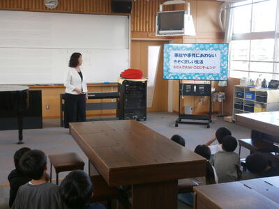 2校時目に矢板東小の栄養教諭の金武先生がいらっしゃって、食に関する指導を行ってくださいました。