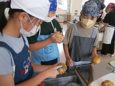 あわせて今日は親子ふれあい活動もかねているのでお家の方もいっしょです。班ごとにサツマイモを洗い、親子で協力してアルミホイルにくるみました。