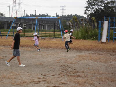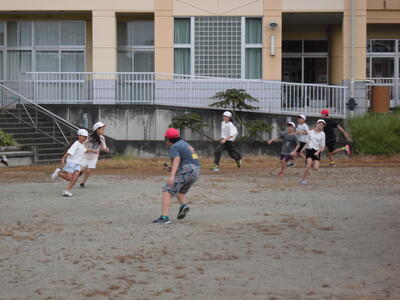 焼き芋が焼けるまで収穫祭としてドッジボール大会を行いました。