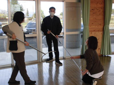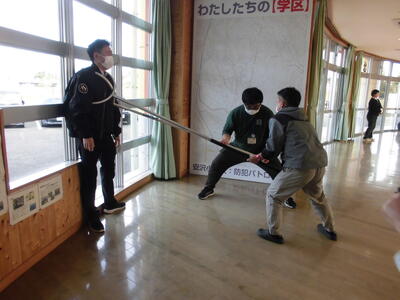 訓練後、子ども達を守る立場の教職員も真剣にさすまたの訓練をうけました。
