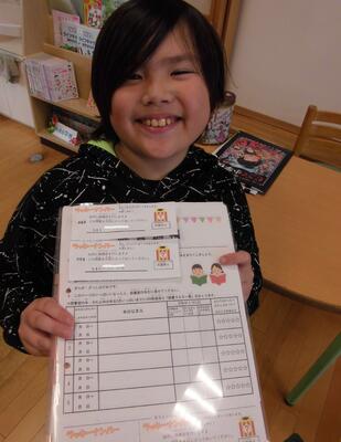 ラッキーナンバー付きの読書通帳をもらってニッコリ