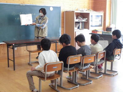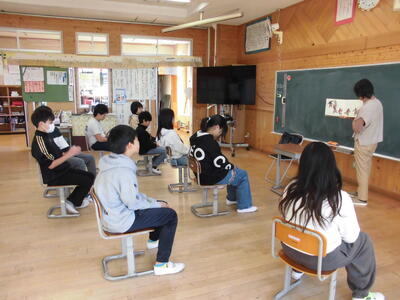 2校時目に栄養教諭の金武先生がいらっしゃって、食に関する指導を行ってくださいました。