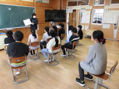 その後、6年生も参加して学校歯科医の渡辺先生から「歯の健康」についてご講話をお聞きしました。