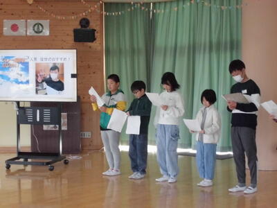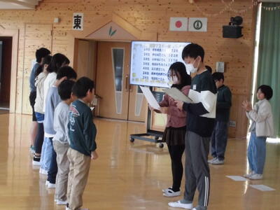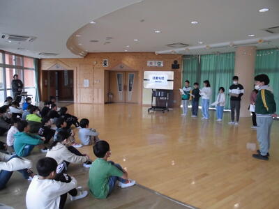 読書マスター賞の表彰式も委員会が行いました。賞状の読み上げや介添えもとても上手でした。
